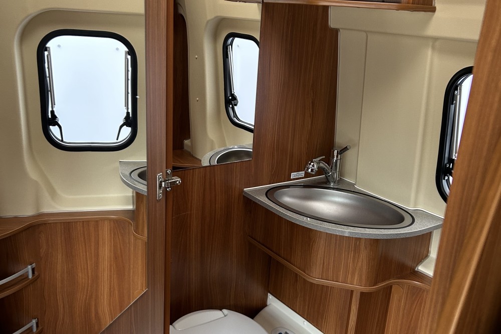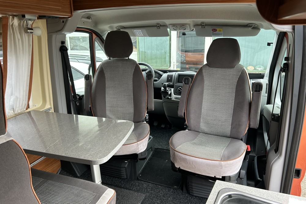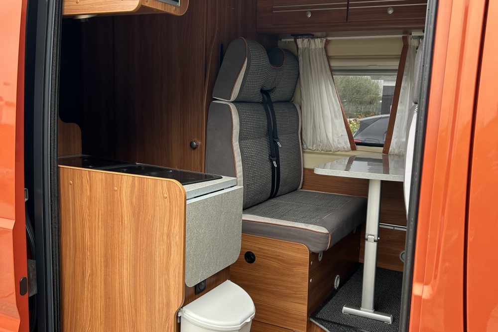 12V aansluitingen leefruimte, 2x huishoudaccu, Bagageruimte, Cassettetoilet, Dakluik groot, Draaibare Cabinestoelen, Hordeur, Koelkast met vriesvak, Lattenbodem, Leeslampjes, Matras traagschuim, Ringverwarming, Tweezitsbank met gordels,