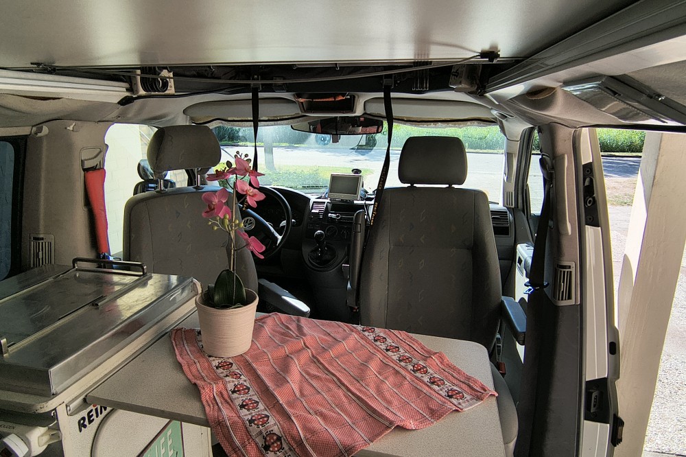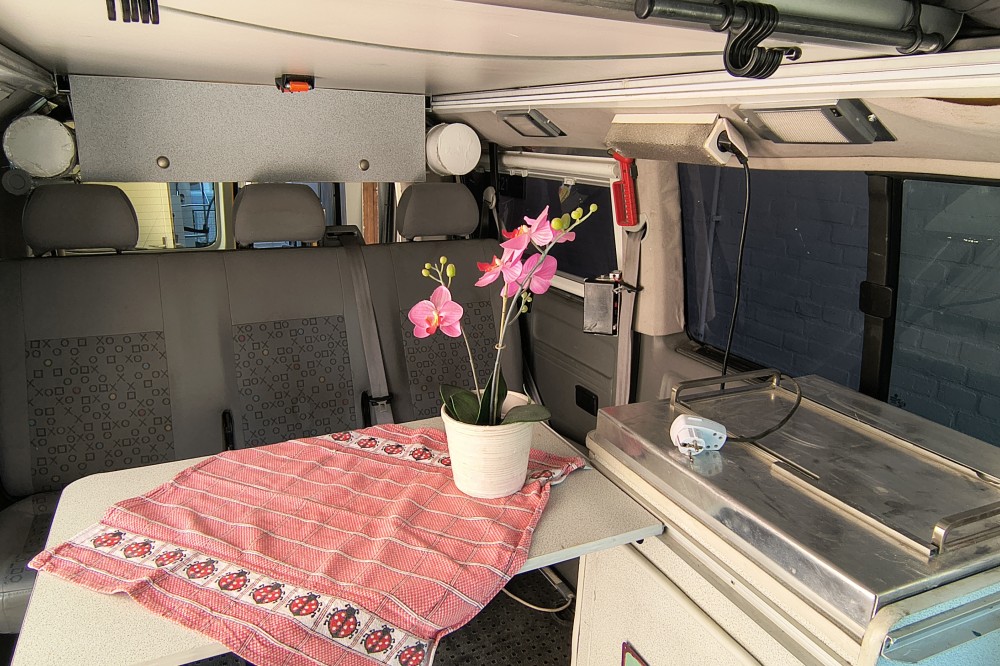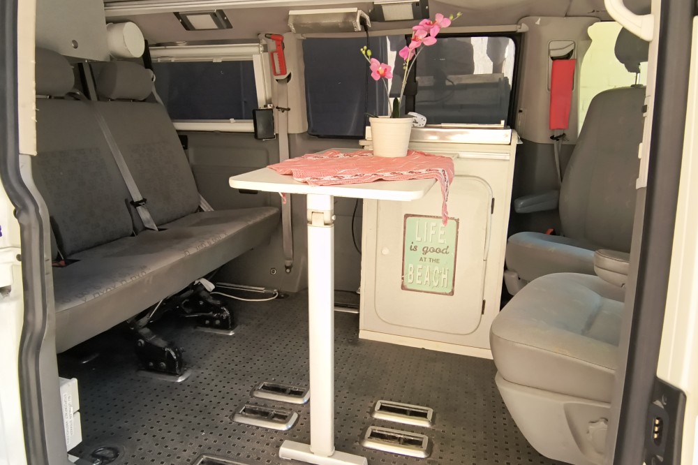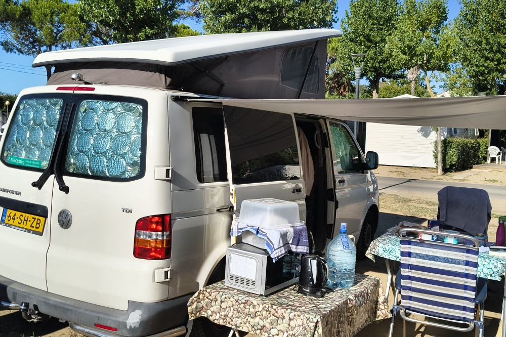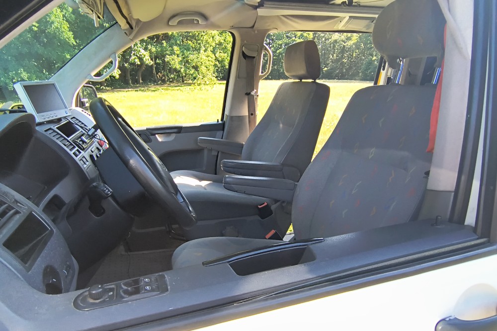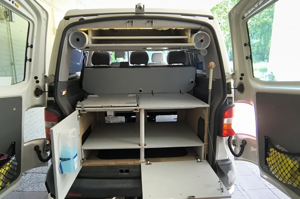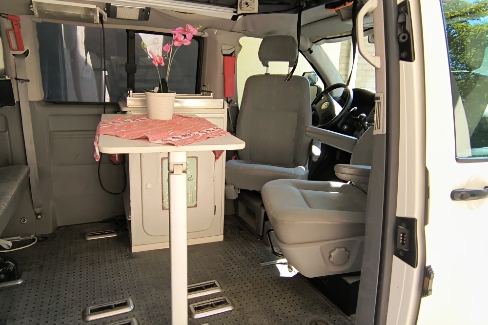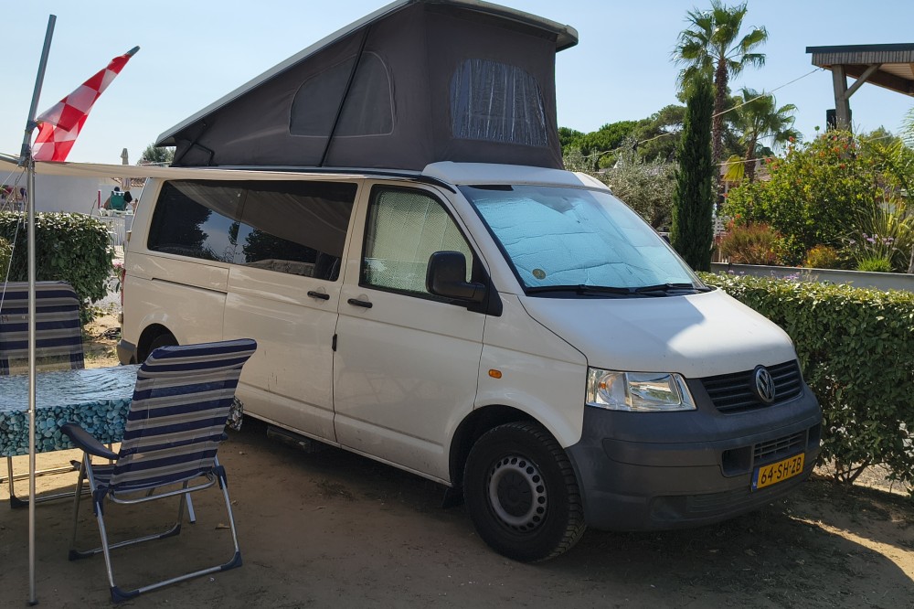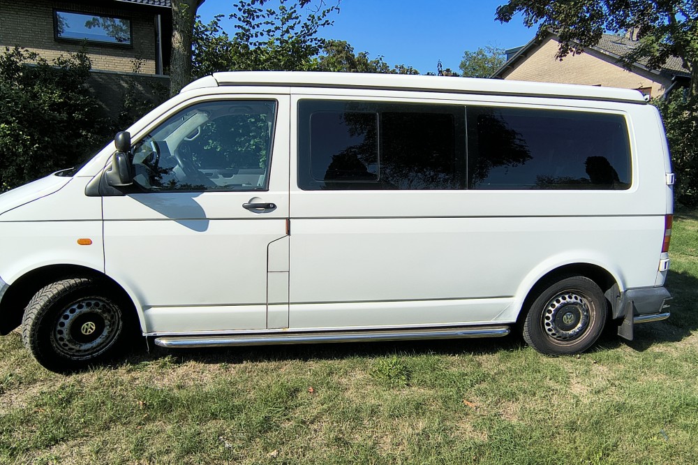 Mooie T5 buscamper LWB Deze fijne en multifunctionele buscamper (oorspronkelijk een taxibus) met 5 zitplaatsen met gordels bieden wij te koop aan. Wij hebben er maar liefst 14 jaar van genoten en hem verder slim omgebouwd tot een ruime buscamper met vele mogelijkheden. Met 5 mensen op reis, met z'n tweeën er spontaan op uit of grote spullen vervoeren? Het kan allemaal dankzij de flexibele indeling. En met zijn lengte van 5 meter 40 past hij in een standaard parkeervak! Deze T5 buscamper is gebouwd op het chassis van een T5 taxibus met lange wielbasis (LWB), dus zo'n 35 cm langer als de fabrieks campers. Deze camper is van alle gemakken voorzien zoals: Een extra kachel voor extra warmte achterin Hefdak over volle lengte van het dak Beide zijden achterin en op de schuifdeur blinderende rolgordijnen met horren Electrisch bedienbare ramen Ledstrips aan beide zijden, zowel voor accu (12 volt) als ook voor lichtnet (230v). Compleet keukenblok met spoelbak en gasfornuis Plaats voor 4 bedden: 2 beneden en twee boven (zie foto's) Km stand: 354.641 Bouwjaar 2006 Uitschuifbare treeplank De comfortabele voorstoelen zijn beide draaibaar en voorzien van luxe armleuningen Kluis onder de bijrijdersstoel voor het veilig opbergen van uw waardevolle spullen Heel veel kastruimte achter onder het bed plus ruime bovenkast achterin, dus extra veel bergruimte. Omdat de oorspronkelijk middelste rij stoelen is verwijderd hebben de drie passagiers op de achterbank super veel beenruimte Met bijpassend luifel Met trekhaak, handig voor een evt fietsendrager