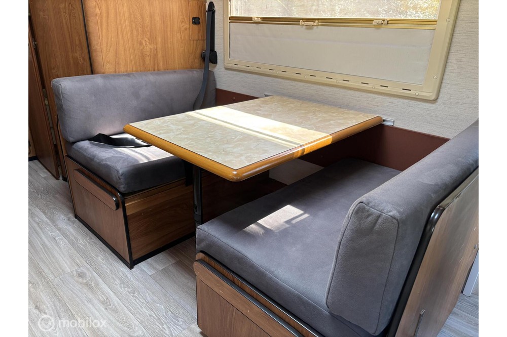Compacte camper met opgefrist interieur – klaar voor nieuwe avonturen! Deze camper biedt een verrassend ruim en fris interieur, recent volledig opgeknapt met oog voor comfort en stijl: - ✅ Nieuwe skai leren bekleding - ✅ Draaibare Espace-voorstoelen voor extra zitgemak - ✅ Nieuwe kussenhoezen en hoogwaardig Novilon vloer - ✅ Vernieuwd leidingwerk en moderne LED-verlichting.