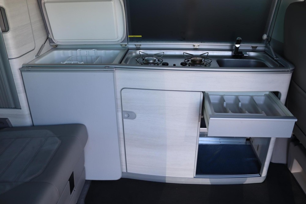 Verder is deze Volkswagen California zeer compleet uitgerust met o.a. standkachel, softclose schuifdeur, origineel VW multimediasysteem, cassetteluifel en de bekende geïntegreerde kampeerstoelen in de achterklep. Daarmee is dit dé perfecte combinatie van vakantiecamper en dagelijkse auto.