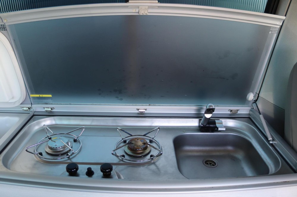 • 2-pits kookplaat met glasafdekking en RVS spoelbak