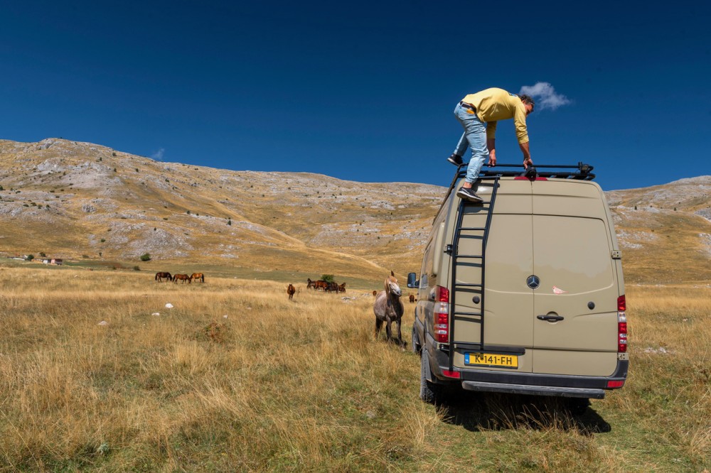 - Custom beloopbare dakdrager met Fiamma luifel (4,2 m)