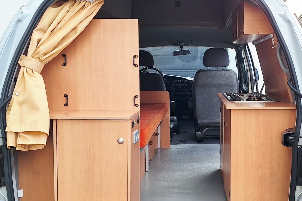 Hyundai H200 Compactcamper met verhoogd dak. Airco, Audio, cruise control, trekhaak. Door “Camper Trading Boekel” omgebouwd tot kampeerauto met twee zitplaatsen. Achterin bedbank, uitschuifbaar tot twee slaapplaatsen. Onder de bedbank technische ruimte en opberglade. Compact keukenblok plus bovenkastjes. Aanrecht met gootsteen, kraan, schoon & vuilwatertank en 2 pits gasstel. Huishoudaccu, kachel, omvormer met netvoorrangsschakeling. Oplaadkabel en verloop met 230v stekker. Dakluik met ventilator (2 richtingen). Luifel en elektrische uitschuif trede bij zijdeur. 2 oprijblokken / levellers. Outwell Country Road Campertent (340x240x225) met slaapcabine. Map met volledige onderhoud historie aanwezig.