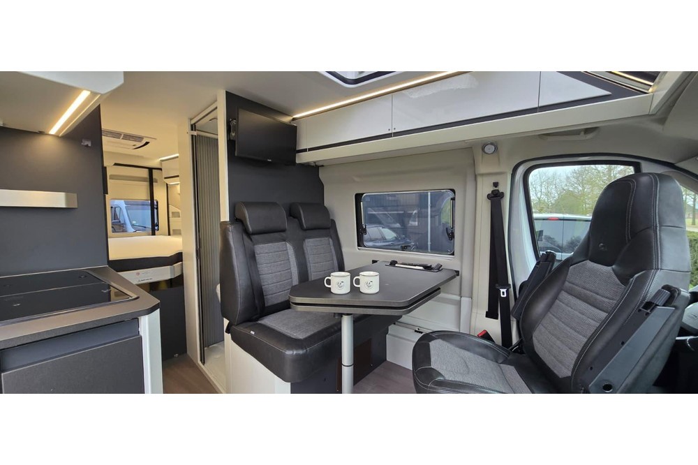 Zeer complete uitvoering! Uitgerust met 9-traps Fiat automaat, 18 inch lichtmetaal met grabber banden, maxi chassis en heel veel opties. Wat dacht je bijvoorbeeld van Busbiker geschikt voor e-bikes, dieselverwarming, zonnepaneel, dakairco en E&P levelsysteem! Dankzij het elektrisch in hoogte verstelbare hefbed, kun je grote bagage meenemen én slapen in de lengte. Bovendien heb je door deze indeling vanuit het leefgedeelte gemakkelijk toegang tot de garage met je spullen. In het hefdak nog een tweepersoonsbed met fantastisch uitzicht vanaf het dak. Het skyroof van deze Supreme uitvoering zorgt voor veel licht en ruimte. Dit alles in bijzonder nette staat.