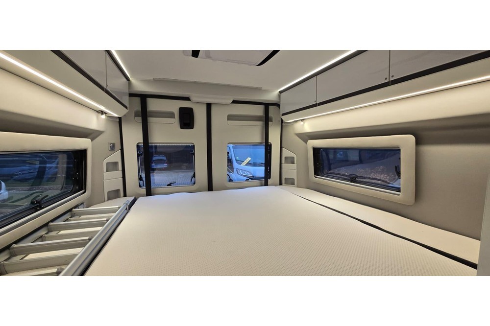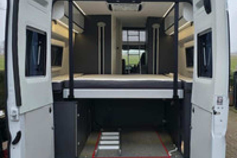 - Veel opbergruimte in de garage onder de bedden, aanpasbaar in hoogte geschikt voor bijvoorbeeld fietsen of scooter én vanuit het leefgedeelte gemakkelijk toegang tot je spullen in de garage