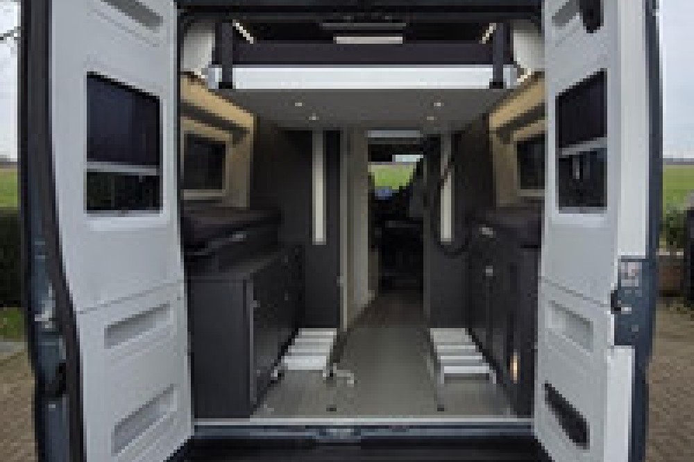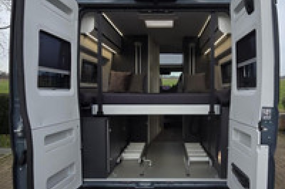 Super praktische en stoere buscamper voor 4 personen. Met het nieuwe Fiat type 8, de 9-traps automaat met 180PK en maxi chassis. Voorzien van drager voor motor, scooter of fietsen met een maximaal gewicht van maar liefst 250kg. Dankzij het elektrisch in hoogte verstelbare hefbed, kun je grote bagage meenemen én slapen in de lengte. Bovendien heb je door deze indeling vanuit het leefgedeelte gemakkelijk toegang tot de garage met je spullen. In het hefdak nog een tweepersoonsbed met fantastisch uitzicht vanaf het dak. Het skyroof van deze Supreme uitvoering zorgt voor veel licht en ruimte.