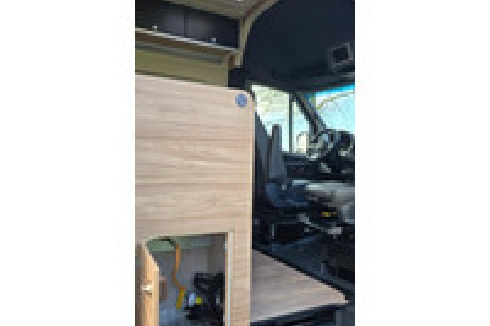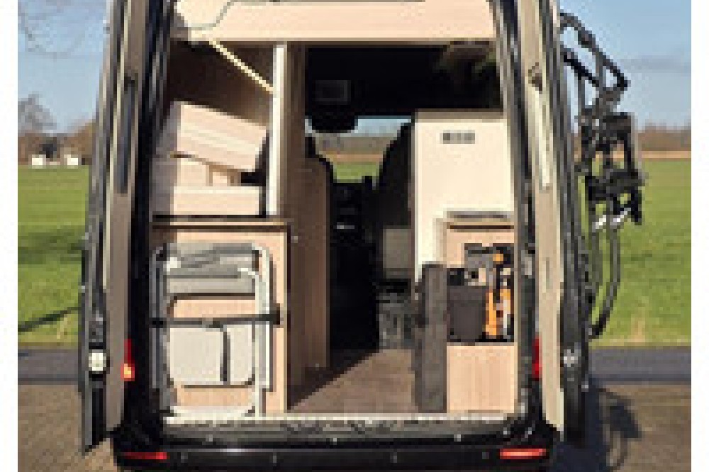- Opbergruimte onder de bedden, vanuit de leefruimte gemakkelijk bereikbaar dankzij het opklapbare bed