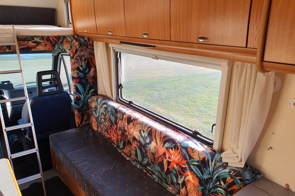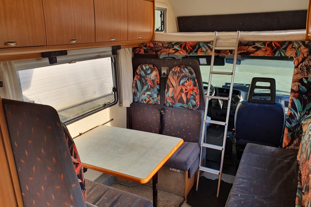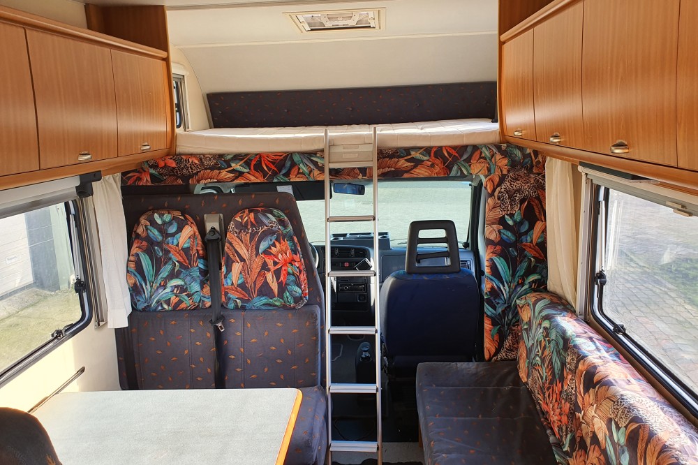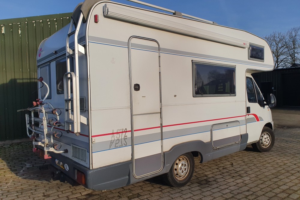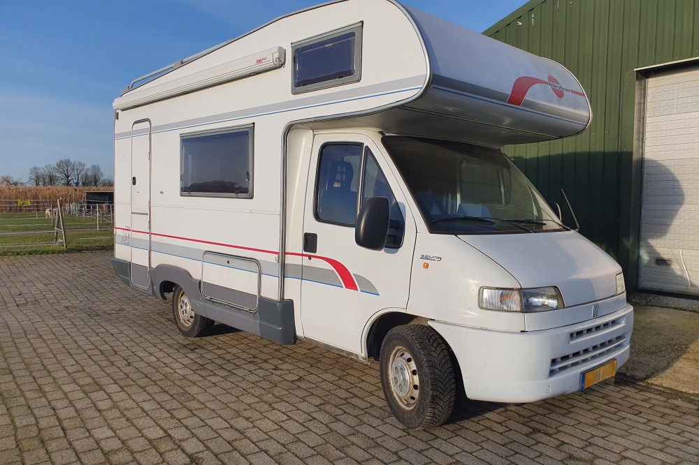 Fiat Ducato 2.8 tdi Bürstner Bouwjaar 17-03-1995 Brandstof Diesel Vermogen 88 kW / 120 PK 5 versnellingsbak Aantal cilinders 4 Massa ledig voertuig 2700 kg Toegestane max. massa voertuig 3200 kg Maximale laadvermogen 500 kg Trein-zit 6 gordels Lange bank Keukenblok met afwasbak, 3 kookpitten, koelkast met vriesvak Badkamer met toilet en douche Zeer veel opbergruimte en ook voor bijvoorbeeld stoelen en tafel. Alkoof bed lengte 210 1 huishoud accu’s 2 zonnepanelen boiler dakluik Fietsendrager voor 4 fietsen Dak-trap Trekhaak