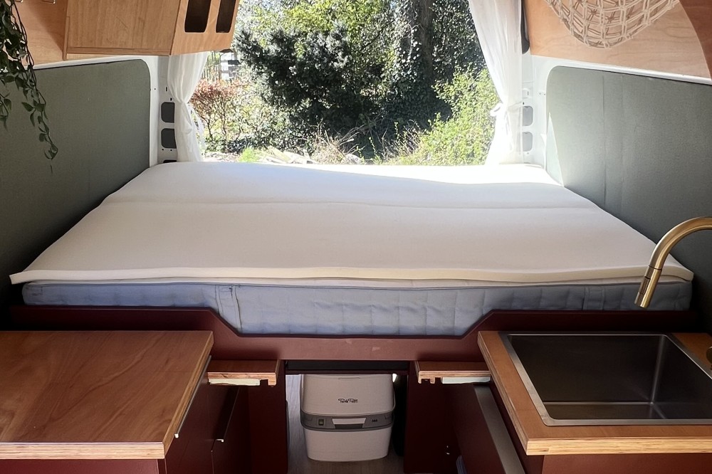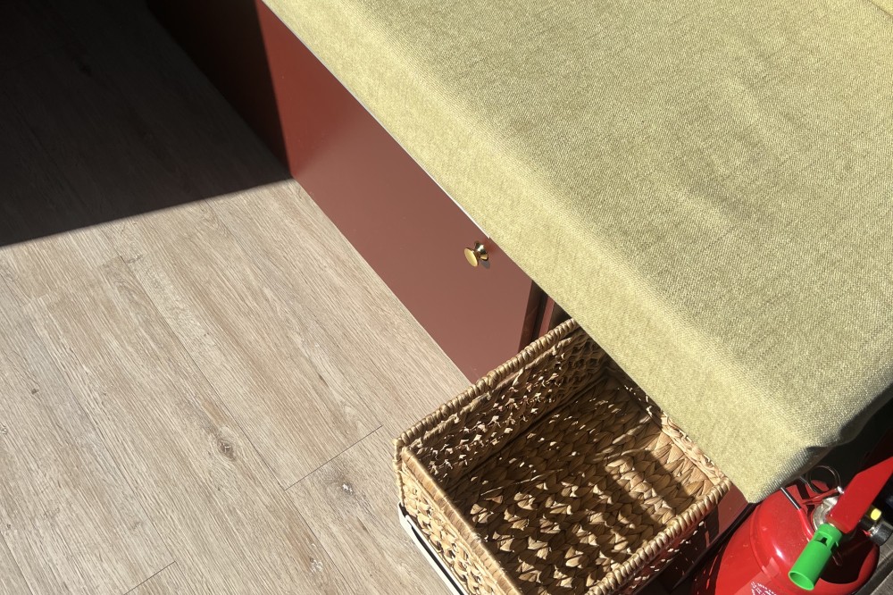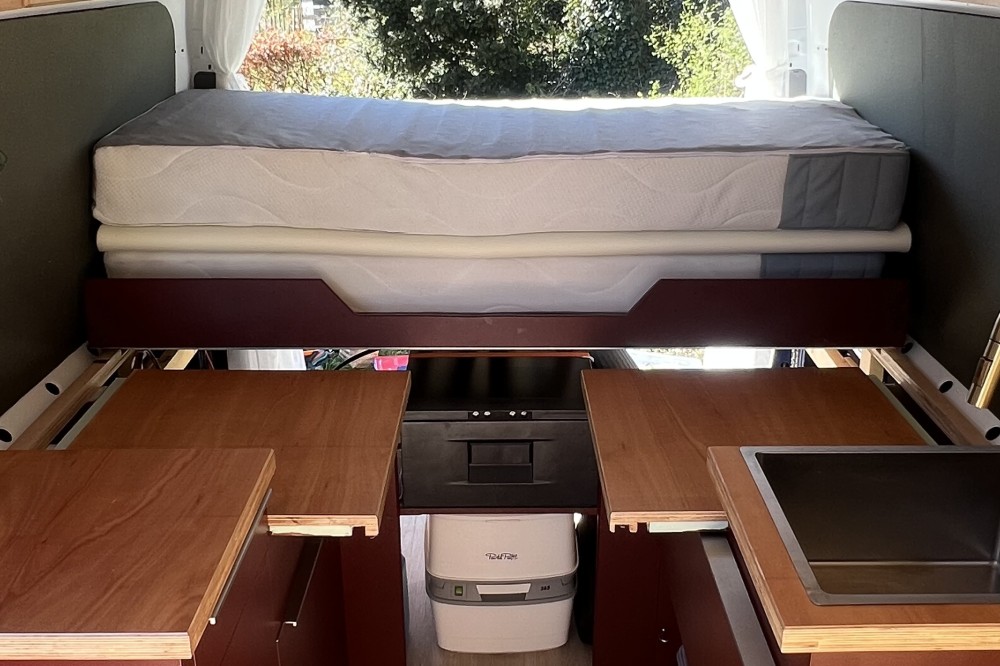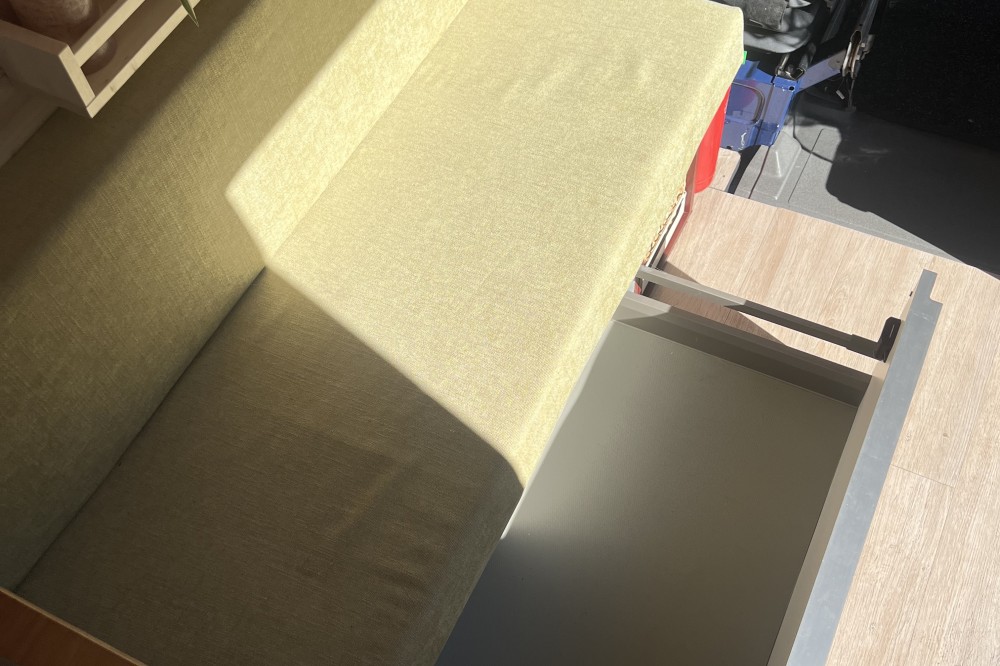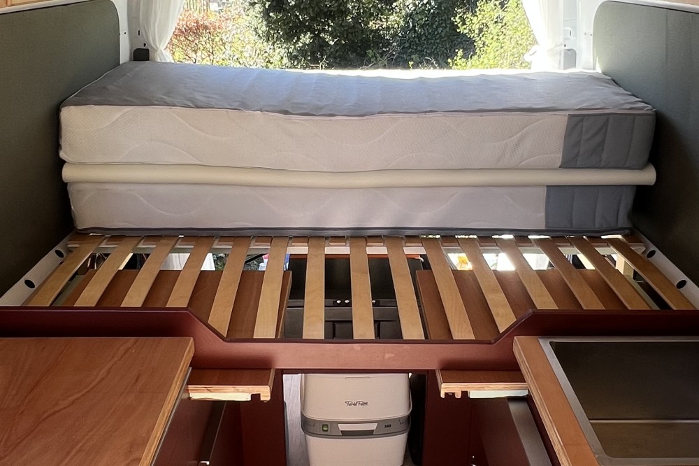 - Uitschuifbaar bed (140 x 185 cm) met traagschuimtopper