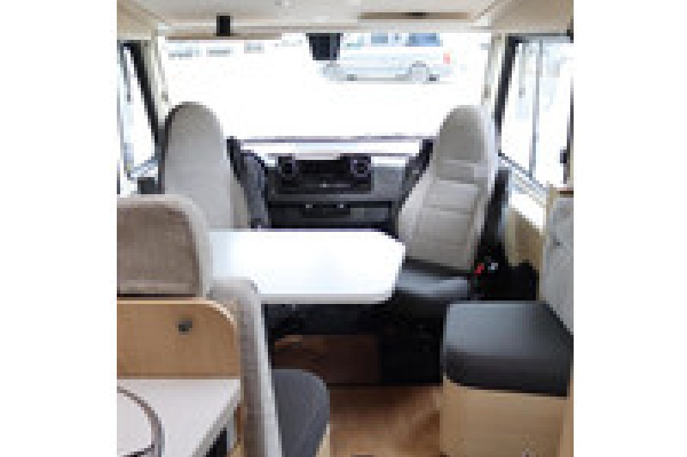 Panorama cabine met toptechnologieIn de cabine van de Hymer BMC-I 600 geniet je van een panoramisch uitzicht, zodat je niet alleen de omgeving optimaal kunt bewonderen, maar ook tijdens het rijden goed overzicht hebt op het verkeer. Het Mercedes-Benz MBUX multimedia systeem zorgt voor een soepele navigatie- en entertainmentervaring, terwijl de luxe pilotenstoelen, die volledig verstelbaar en draaibaar zijn, het comfort verhogen.