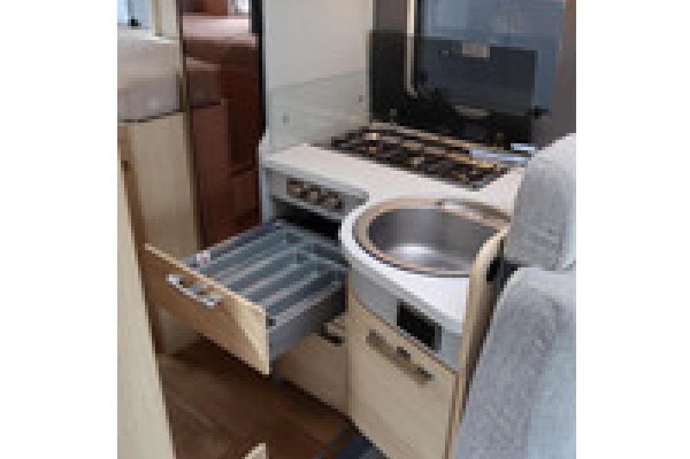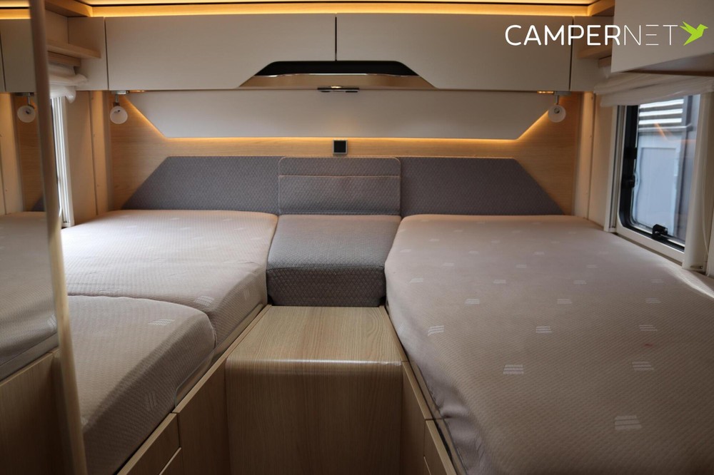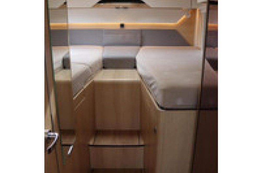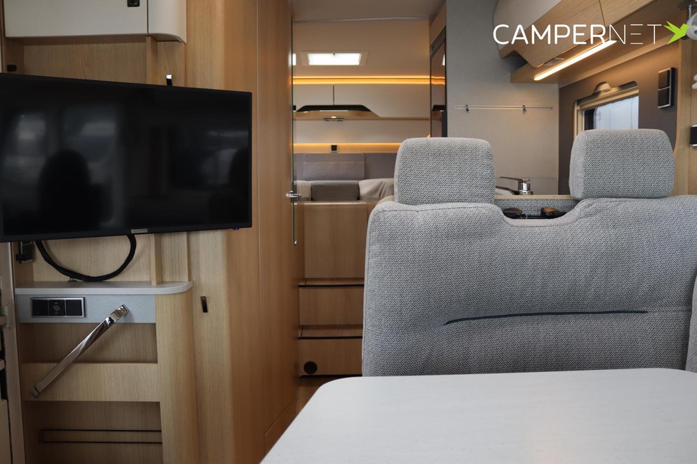 Luxe en praktische detailsDe Hymer BMC-I 600 biedt een ruime zithoek met een L-zit die ontstaat door de draaibare voorstoelen. Het elegante Grand Oak meubeldecor in combinatie met de luxe Kitami bekleding zorgt voor een verfijnde uitstraling. Dankzij de dubbele bodem, die verwarmd is en extra opbergruimte biedt, kun je jouw spullen veilig en droog opbergen. De 180 liter schoonwatertank en de 150 liter vuilwatertank zijn weggewerkt in de dubbele bodem, terwijl je vanuit de buitenkant eenvoudig toegang hebt tot de opslagruimte. De ruime garage heeft een laadhoogte van 132 cm, is aan beide zijden toegankelijk en biedt voldoende ruimte voor uw fietsen, scooter en bagage.