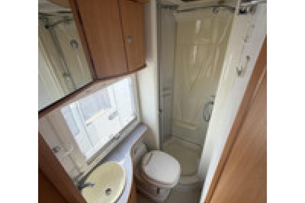 De camper beschikt over een nette sanitaire ruimte met cassettetoilet en boiler voor warm water. Voor extra comfort en gebruiksgemak is deze Chausson voorzien van onder andere een achteruitrijcamera, zonnepanelen, omvormer, TV met schotel en een radio.