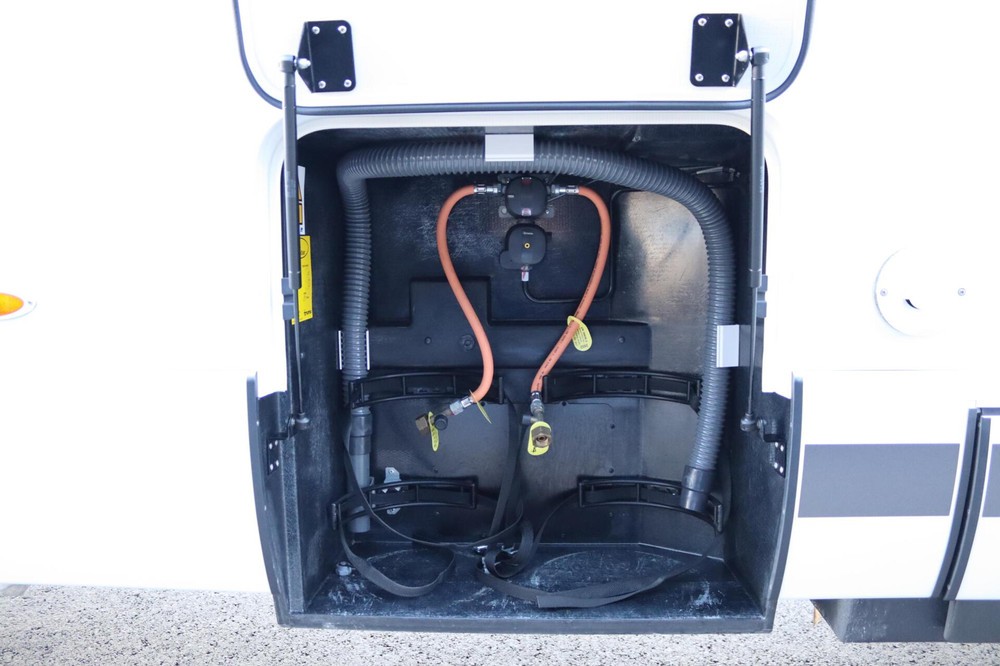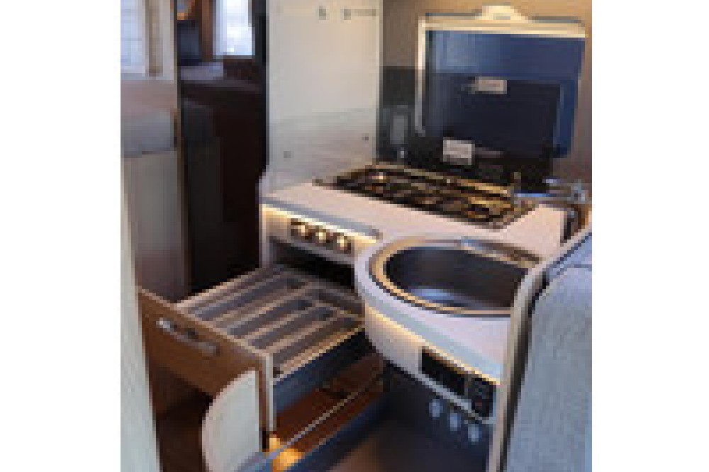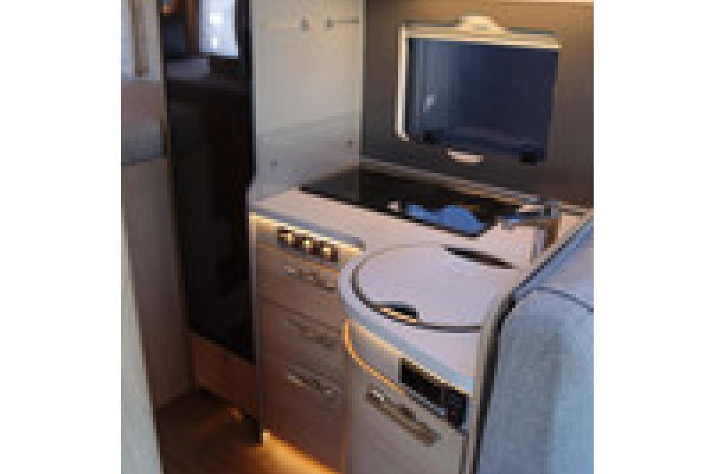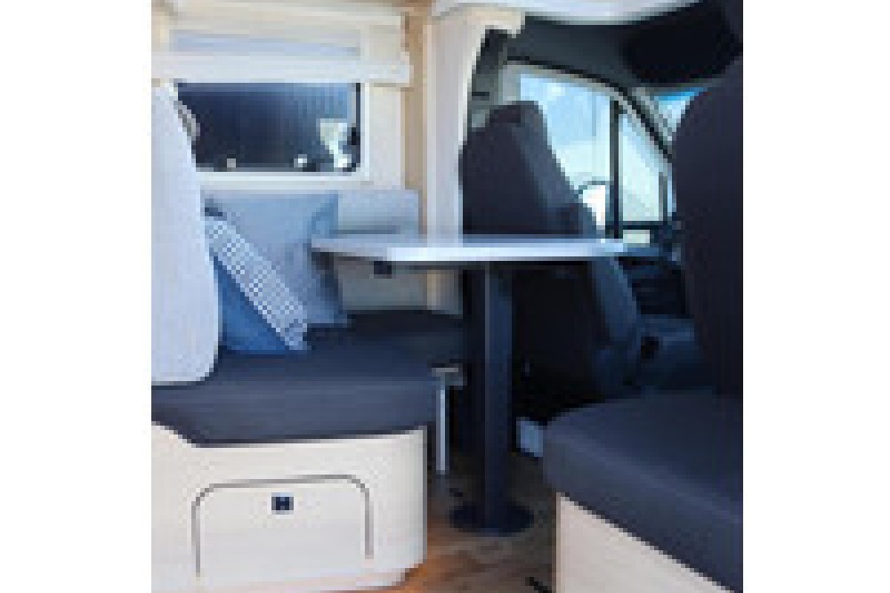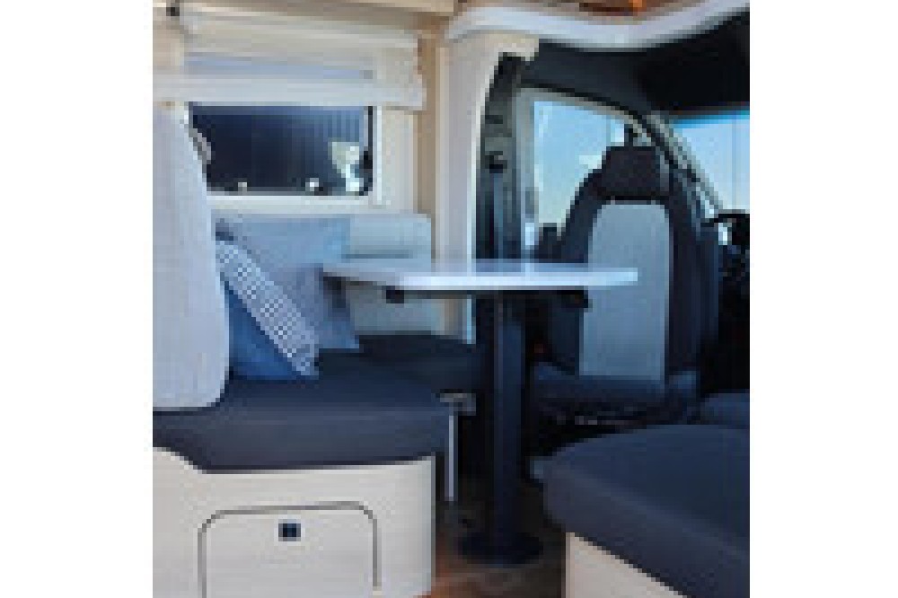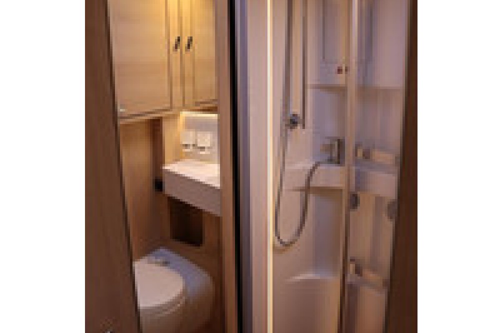 Luxe en praktische detailsDe Hymer BMC-T 600 biedt een ruime zithoek met een L-zit die ontstaat door de draaibare voorstoelen. Het elegante Grand Oak meubeldecor in combinatie met de luxe Kitami bekleding zorgt voor een verfijnde uitstraling. Dankzij de dubbele bodem, die verwarmd is en extra opbergruimte biedt, kun je jouw spullen veilig en droog opbergen. De 180 liter schoonwatertank en de 150 liter vuilwatertank zijn weggewerkt in de dubbele bodem, terwijl je vanuit de buitenkant eenvoudig toegang hebt tot de opslagruimte. De ruime garage heeft een laadhoogte van 132 cm, is aan beide zijden toegankelijk en biedt voldoende ruimte voor uw fietsen, scooter en bagage.