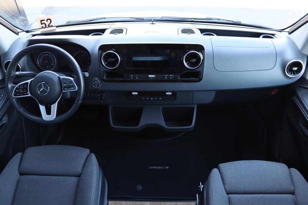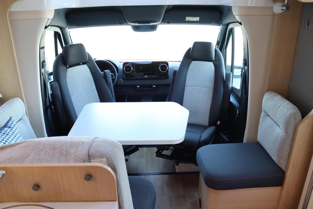Panorama cabine met toptechnologieIn de cabine van de Hymer BMC-T 600 geniet je van een panoramisch uitzicht, zodat je niet alleen de omgeving optimaal kunt bewonderen, maar ook tijdens het rijden goed overzicht hebt op het verkeer. Het Mercedes-Benz MBUX multimedia systeem zorgt voor een soepele navigatie- en entertainmentervaring, terwijl de luxe pilotenstoelen, die verstelbaar en draaibaar zijn, het comfort verhogen.