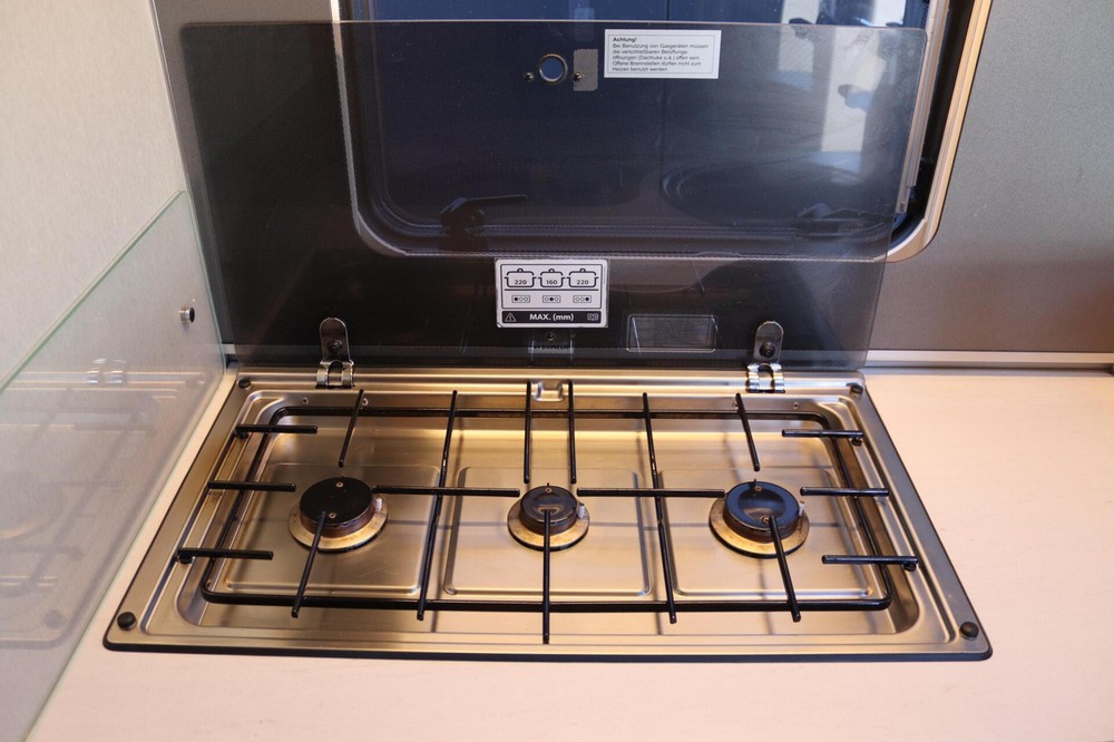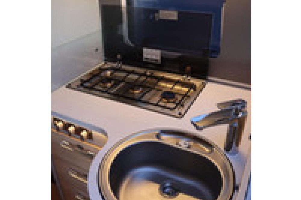 Interieur- 3-pits kookplaat met glasafdekking en RVS spoelbak