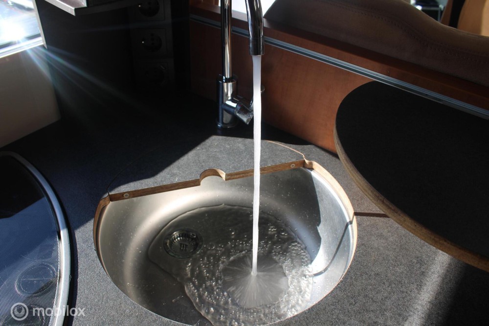 Er is warm water beschikbaar voor de douche en keuken, er zijn schoon- en vuilwatertanks aanwezig alsook een 'chemisch' toilet