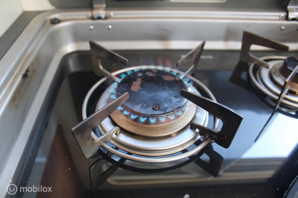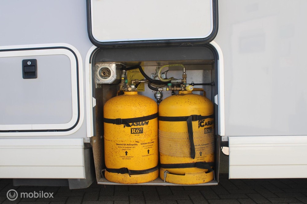 Er zijn inwendige gasflessen aanwezig, deze kun je tanken met LPG, dus geen losse flessen wisselen.
