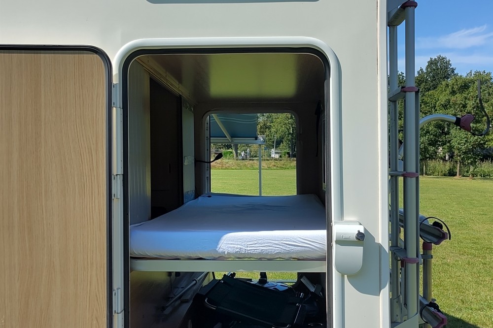 - Onderste bed opklapbaar zodat er in de garage ook fietsen kunnen staan (naast de 2 fietsen op de drager).
