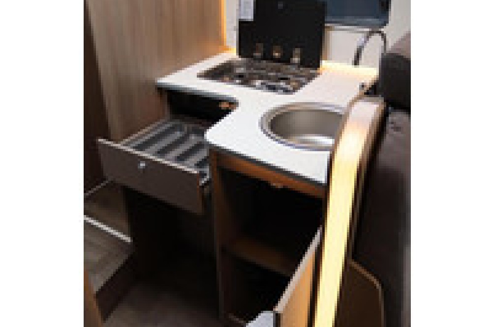 Met zijn lengte van 7,41 meter benut de T447 de ruimte voor een royale badkamer met kleed-/omkleedfunctie en een aparte douche. Bijna zoals thuis – voor meer privacy onderweg. Met zijn hefbed is deze camper geschikt voor maximaal 4 reizigers!