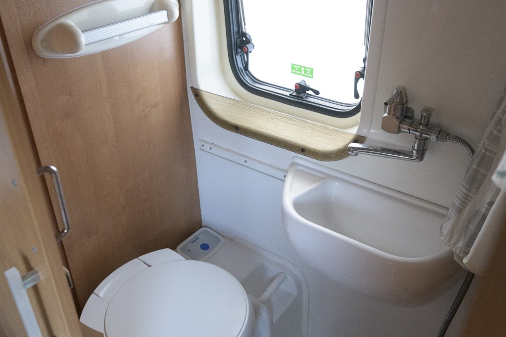 - Wastafel, toilet en douche