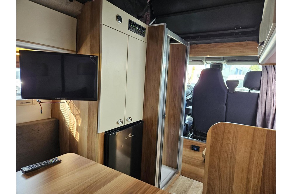 Deze Renault-camperbus is voorzien van, Airco, Cruise, Navigatie, Trekhaak. Dus kortom een compacte luxe Camperbus