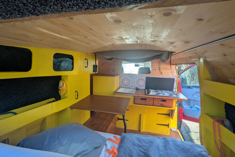 Let op: er tikt iets in de motor, vermoedelijk ingesleten klepstoters. De bus rijdt nog, maar vanwege deze mogelijke reparatie is de prijs scherp geprijsd. Wij stappen over op een grotere camper en laten deze reparatie daarom aan jou over.