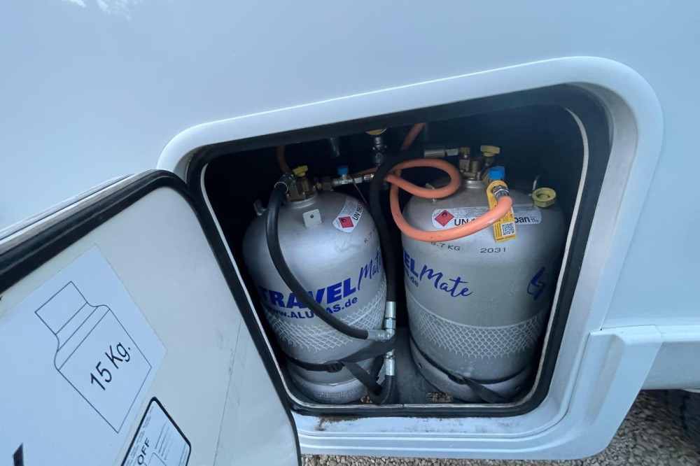 2 LPG flessen aanwezig + LPG aansluiting om te tanken = superhandig!