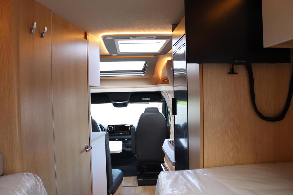 Lichte, stabiele voertuigopbouw met extra veiligheid en comfort – dat is het resultaat van de succesvolle samenwerking tussen Mercedes-Benz en HYMER. De HYMER B-klasse ModernComfort T is de eerste half-integraal wereldwijd met de combinatie van het nieuwe Mercedes-Benz-Sprinter-motorrijtuig en het door HYMER zelf ontwikkelde en bekroonde SLC-chassis. Door de uiterst lichte en stabiele opbouw evenals de extra veiligheid en het rijcomfort bent u met deze sportief-elegante begeleider op elke reis altijd een etappe vooruit.