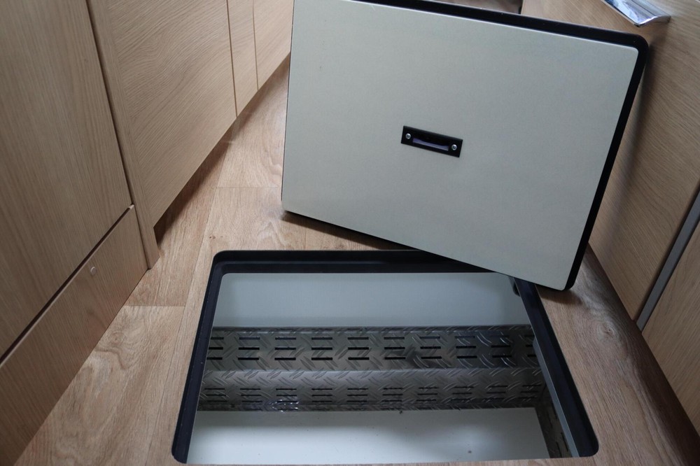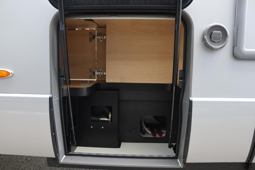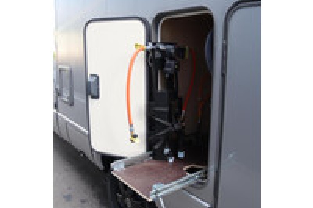 - Ruimte voor gasflessen met deur en uittrekbare slede