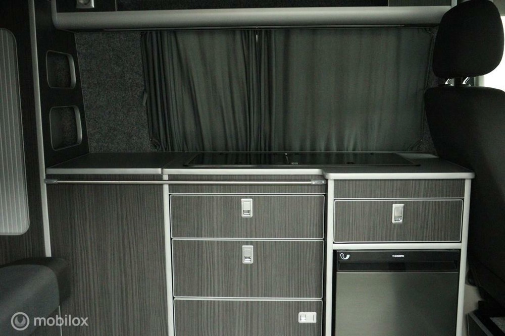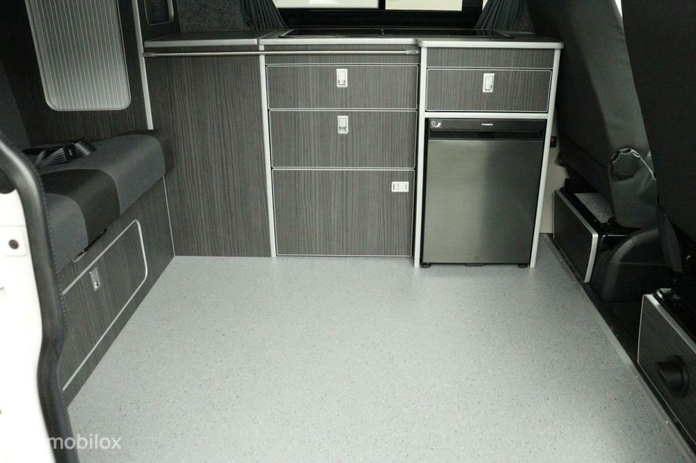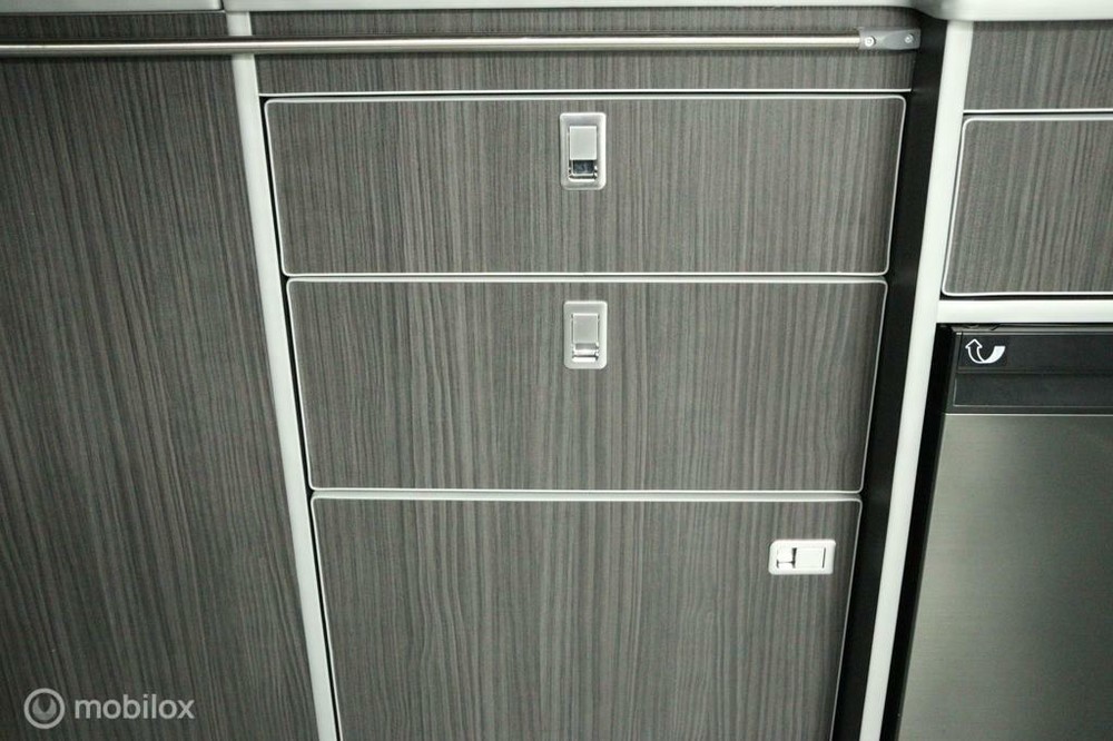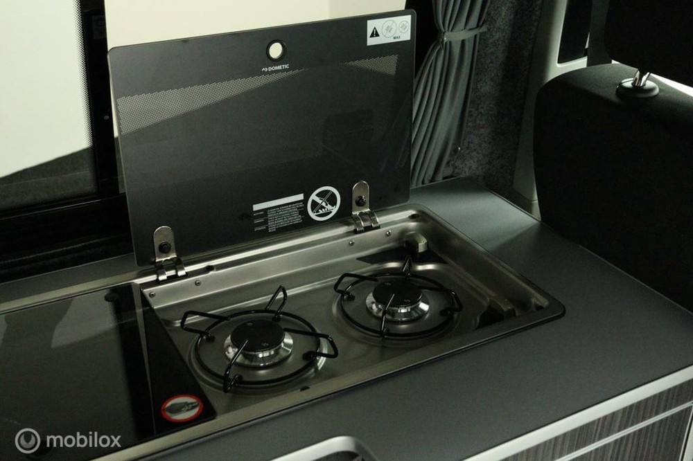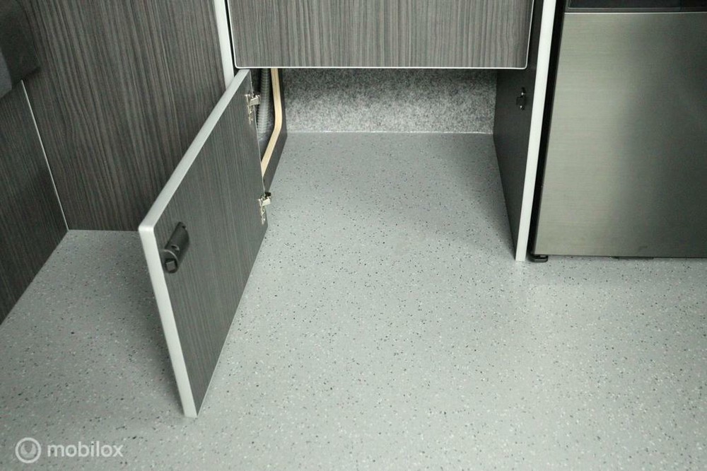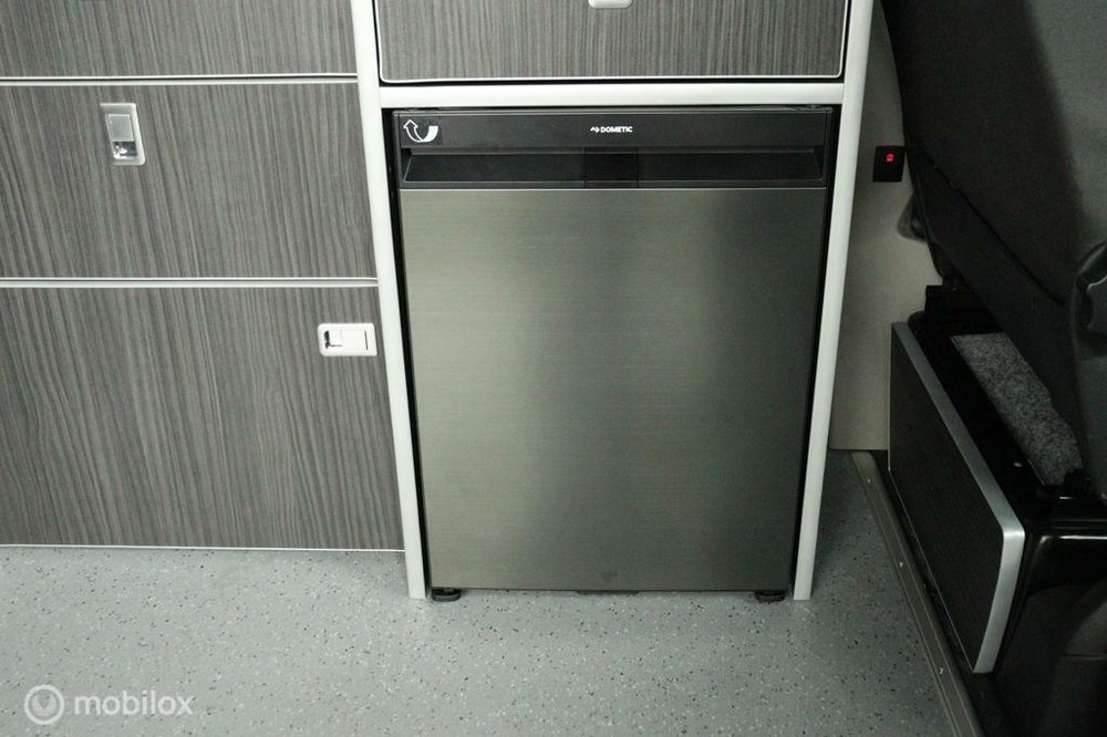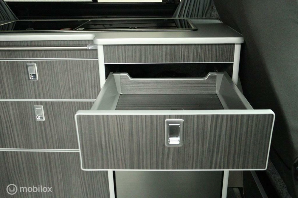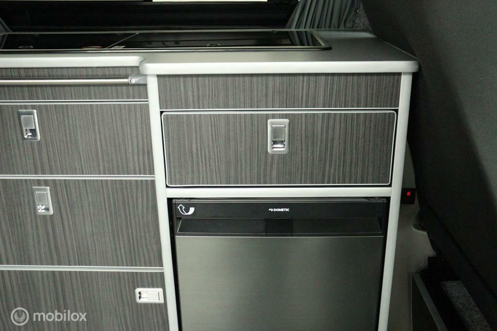 keukenblok bestaat uit een spoelbak met schoon en vuilwater tank en een 2 pits gasstel. Verder een besteklade, dometic compressor koelkast met vriesvakje koelvak heeft een inhoud van 45 liter en verschillende opbergvakjes.