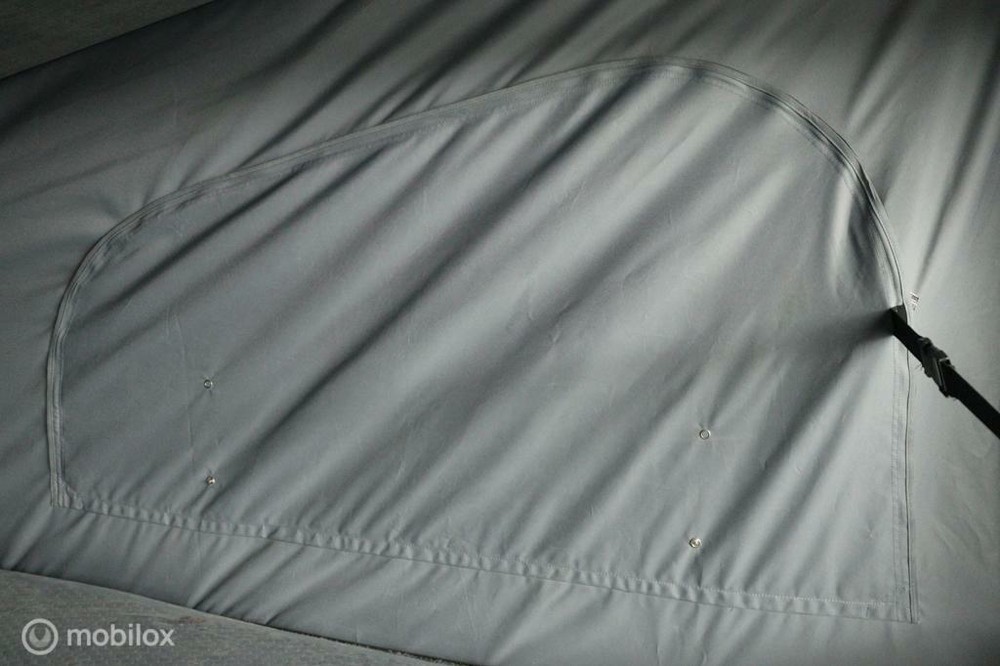 De buscamper is voorzien van een slaap-hefdak met een bedmaat van 120 x 200 cm en heeft rondom glastinting.