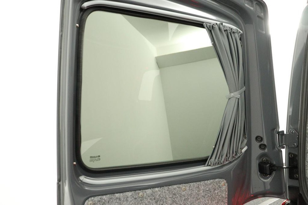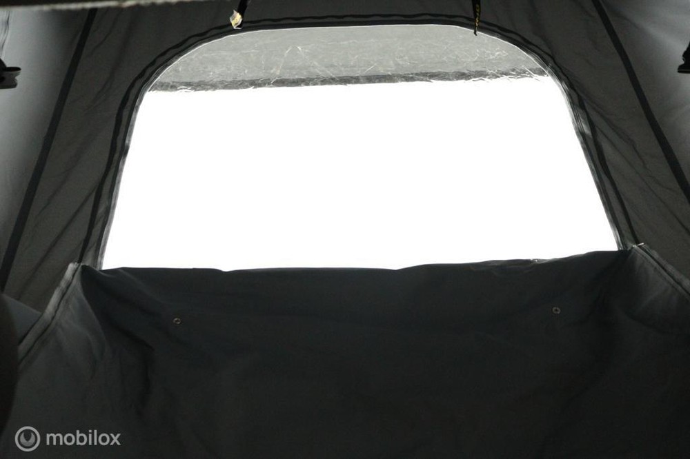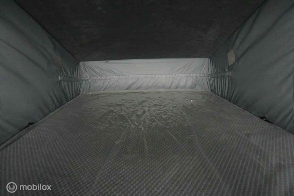 De buscamper is voorzien van een slaap-hefdak met een bedmaat van 120 x 200 cm en heeft rondom glastinting.