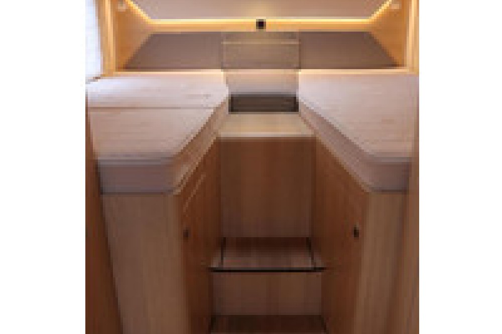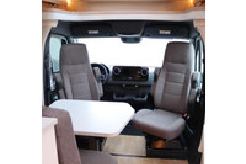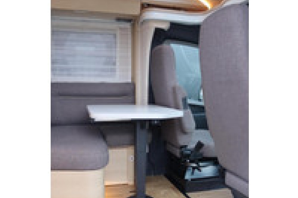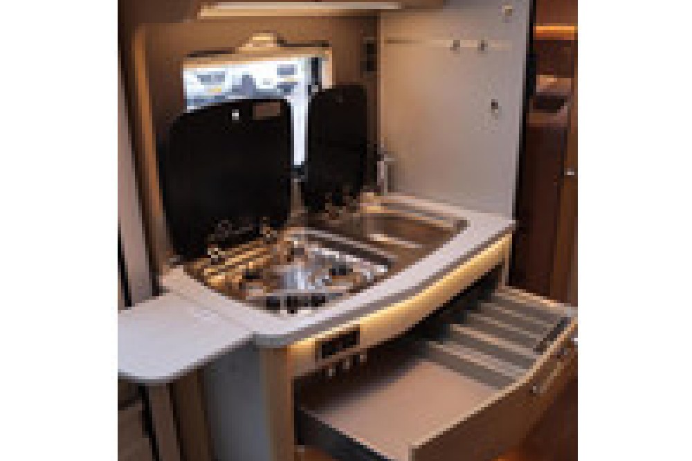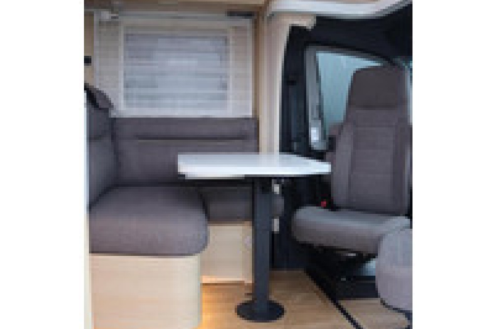 Luxe en praktische detailsDe Hymer BMC-T 580 biedt een ruime zithoek met een L-zit die ontstaat door de luxe draaibare voorstoelen. Het elegante Grand Oak meubeldecor in combinatie met de luxe Janeiro bekleding zorgt voor een verfijnde uitstraling. Dankzij de dubbele bodem, die verwarmd is en extra opbergruimte biedt, kun je jouw spullen veilig en droog opbergen. De 180 liter schoonwatertank en de 150 liter vuilwatertank zijn weggewerkt in de dubbele bodem, terwijl je vanuit de buitenkant eenvoudig toegang hebt tot de opslagruimte. De ruime garage heeft een laadhoogte van 132 cm, is aan beide zijden toegankelijk en biedt voldoende ruimte voor uw fietsen, scooter en bagage.