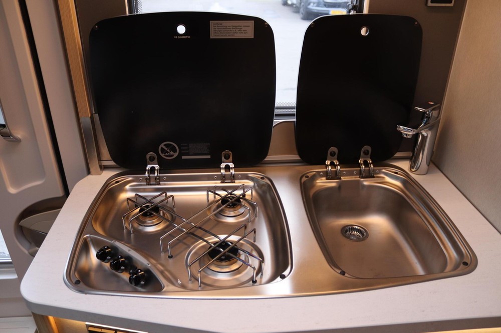 - Verswatertank van 180 l en afvalwatertank van 150 l
