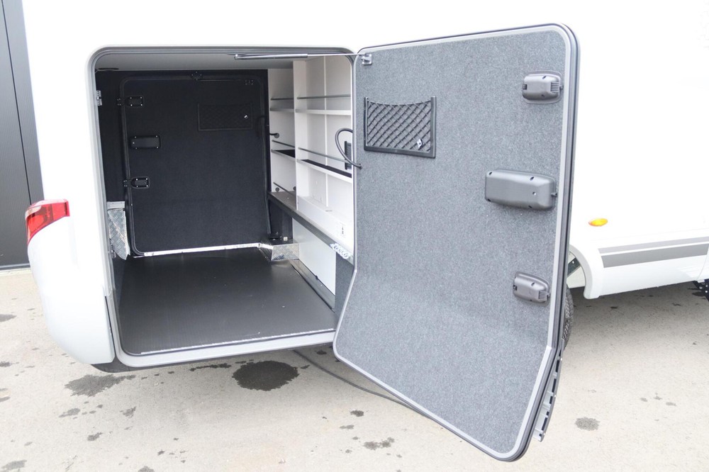 Het draagvermogen van de grote, goed toegankelijke garage met 2 deuren is standaard 350 kg, optioneel 450 kg.