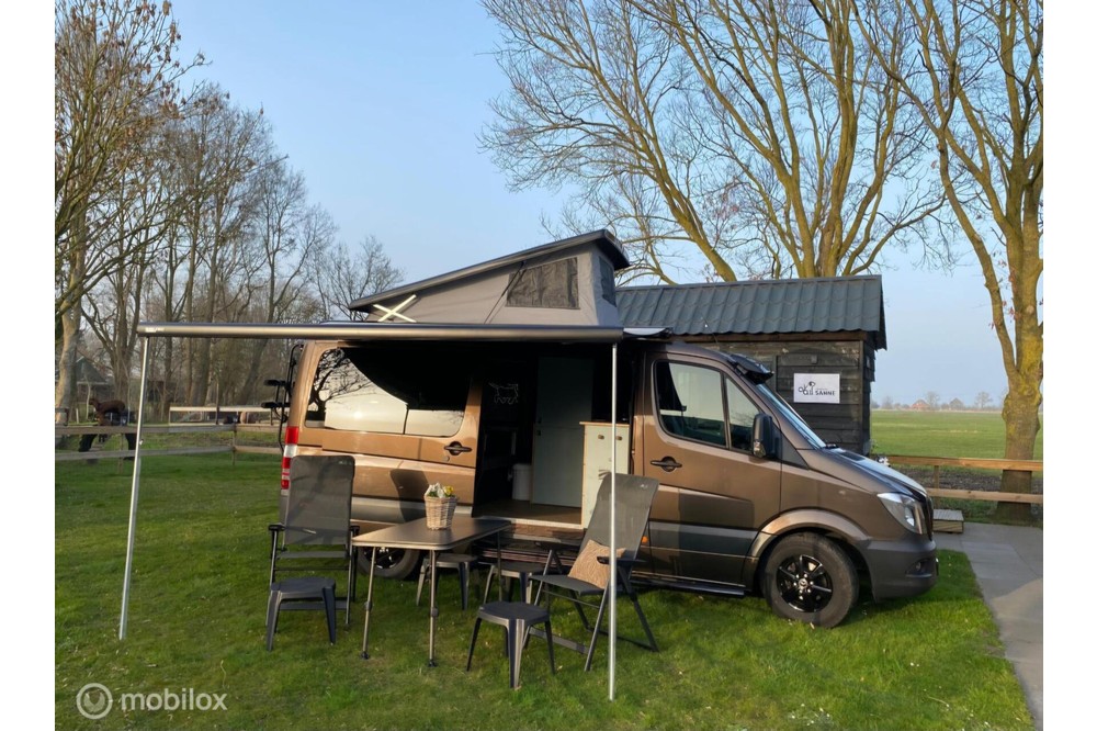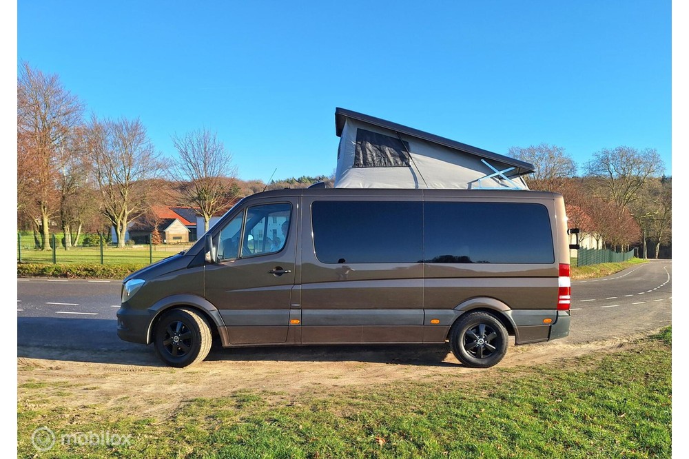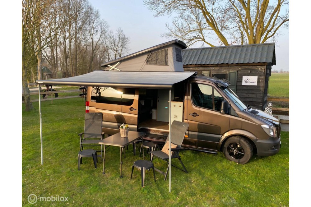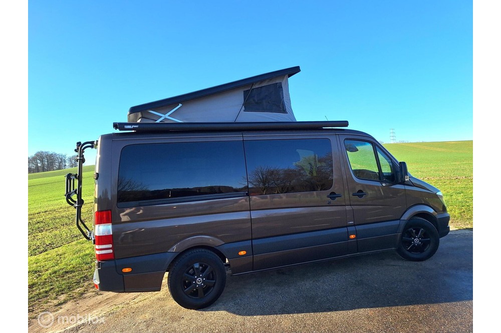 Mercedes Sprinter 316 2.2 CDI Automaat. Camper 6 persoons, Slaap-Hef-dak, Luifel, Fietsendrager, Airco, Luchtvering stoelen.