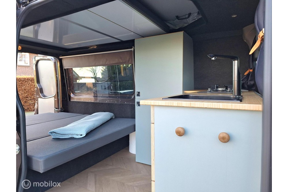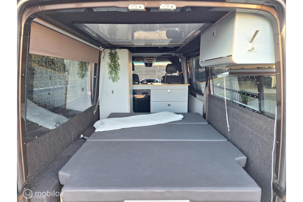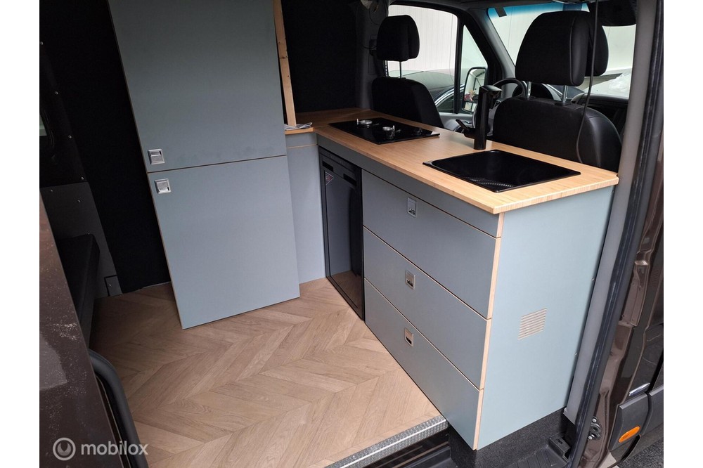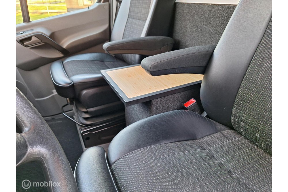 CAMPER MERCEDES-BENZ SPRINTER 316 CDI EURO 6. Uitvoering 6 PERSOONS !! Dat is wel uniek voor een Camper !! Bank is in delen opklapbaar en voorzien van 4 heupgordels. Uiteraard RDW goedgekeurd. De Camper heeft 4 slaapplaatsen. 2x bovenin hemelbed, en 2x op de slaapbank. Mooie afgewerkte luxe houten keuken met ruime koelkast inclusief vriezer, gasstel en voorzien van koud en warm water. Boiler, Draagbaar toilet, Aansluiting 12v en 220v inclusief extra accu en omvormer. Waterreservoir toevoer en afvoer bevinden zich tussen de voorstoelen. Tafel met stoelen voor buiten zitten. Dus helemaal compleet, en van alle gemakken voorzien. Volledig geïsoleerd wat zorgt voor extra warmte, stilte en meedraagt aan comfortabele rijervaring !