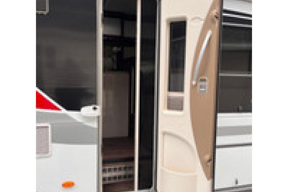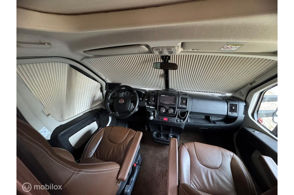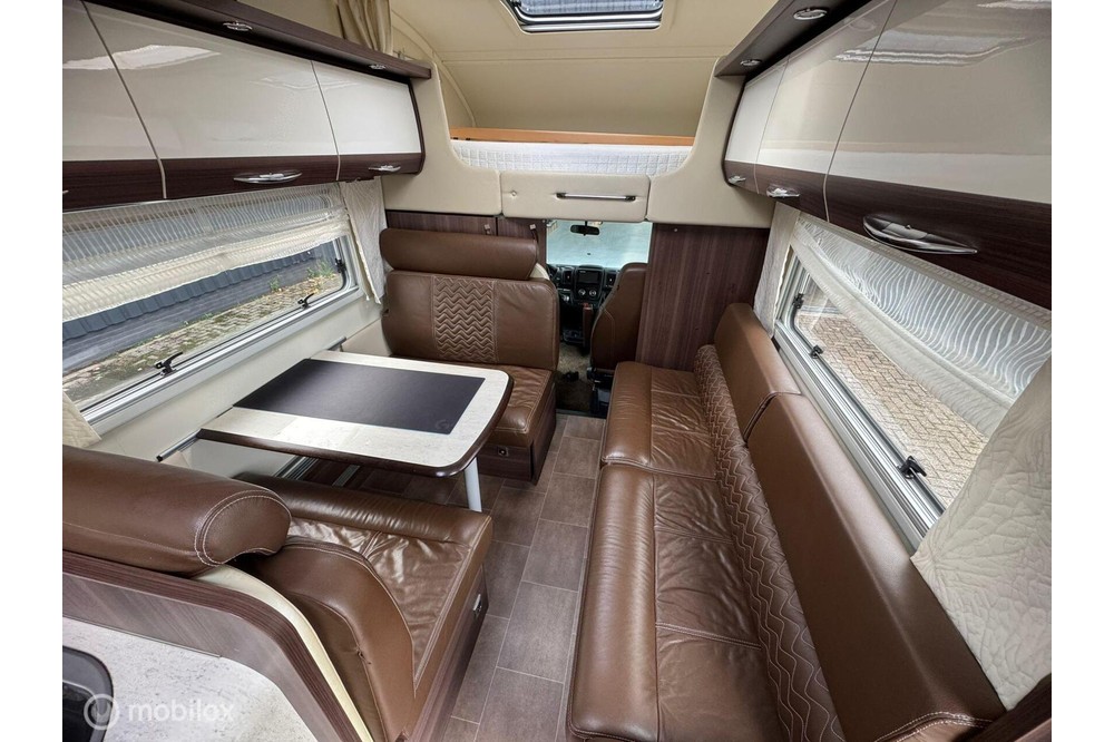 verder voorzien van: schotel en tv - fietsenrek geschikt voor 4 fietsen - grote garage geschikt voor 1 scooter of fietsen - Dubbele vloer (bodem) voor extra opslag - stoel verwarming in cabine - draai stoelen in cabine - lederen bekleding - elektrische ramen - ingebouwde afzuigkap boven de keuken en afzuiging op de wc - extra beeldscherm voor de camera's.