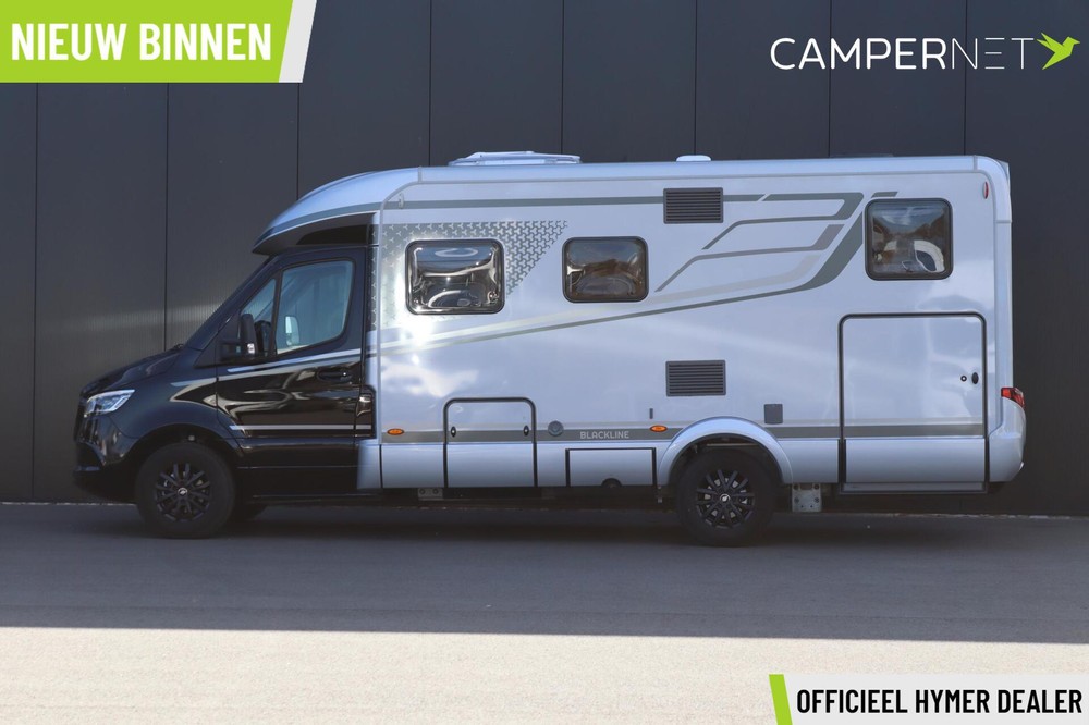 - Blackline pakket (Pakket bevat o.a.: Obsidiaan zwart Mercedes / Crystal silver Hymer / Plus pakket / Bestickering / Zwarte velgen (all season) / Bumpers in kleur / Luifel / Houten douchevlonder / Wooncomfortpakket enz.)