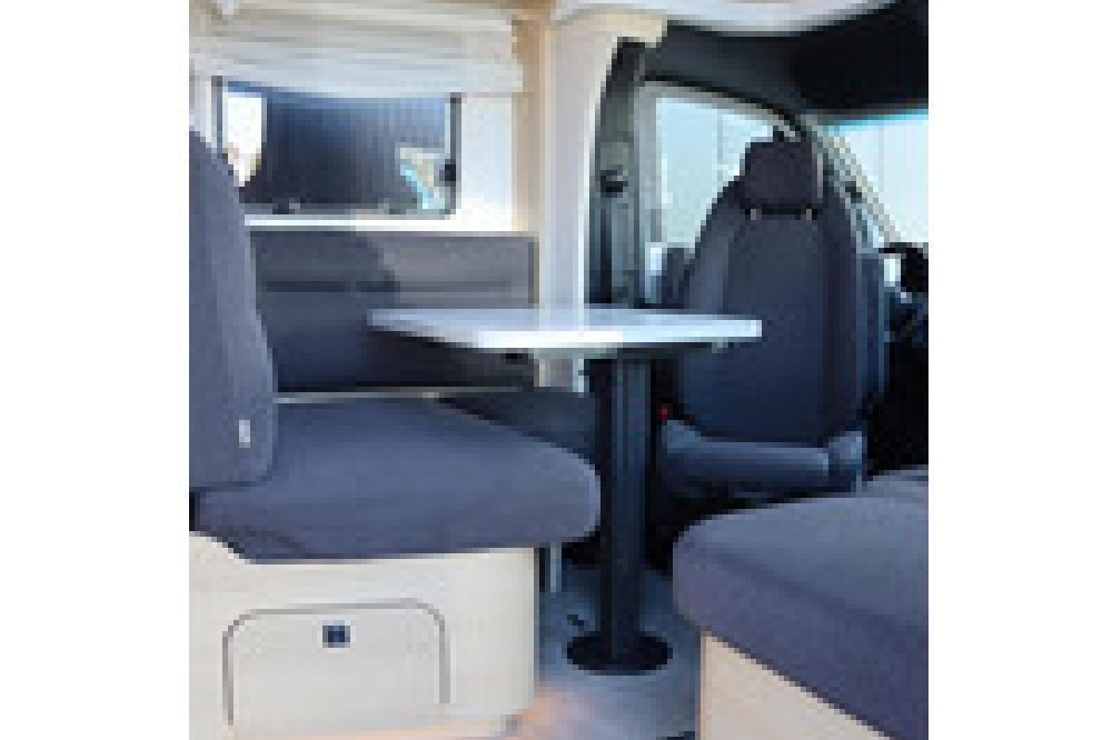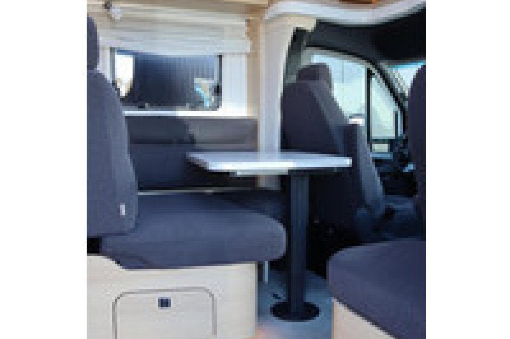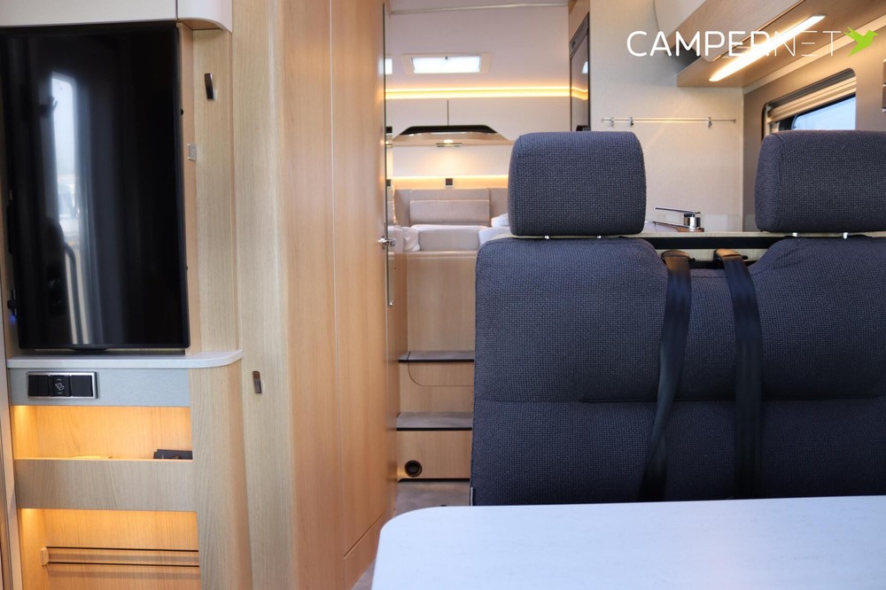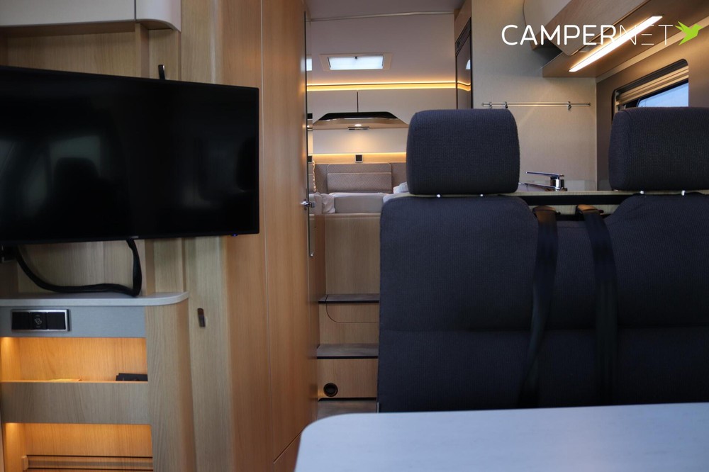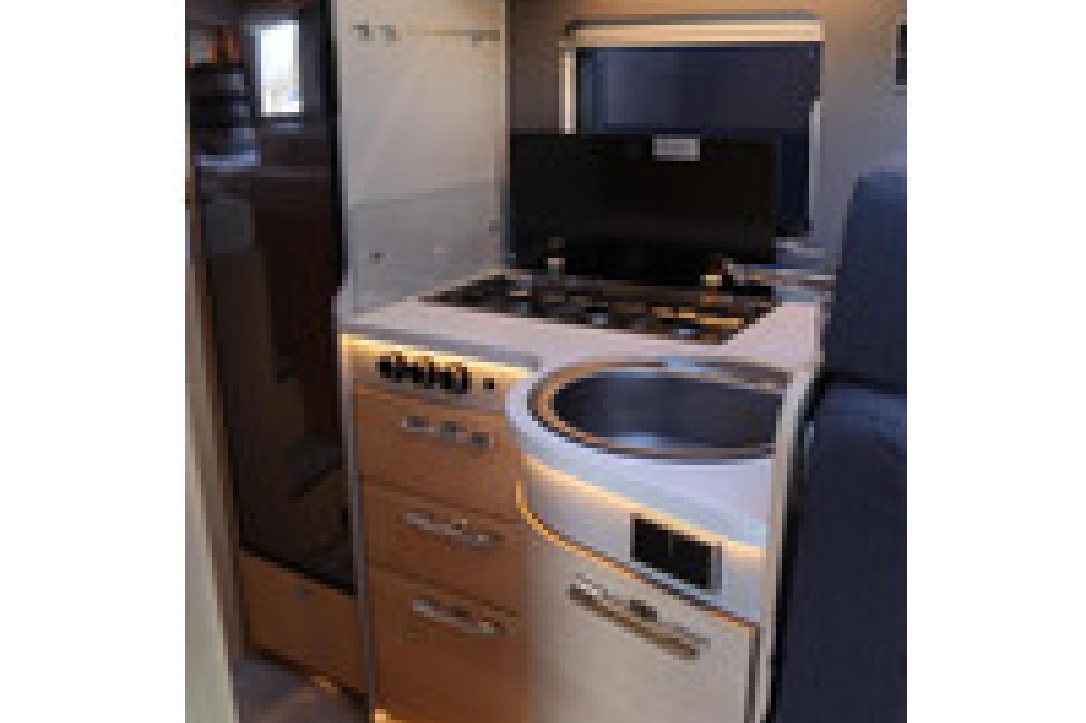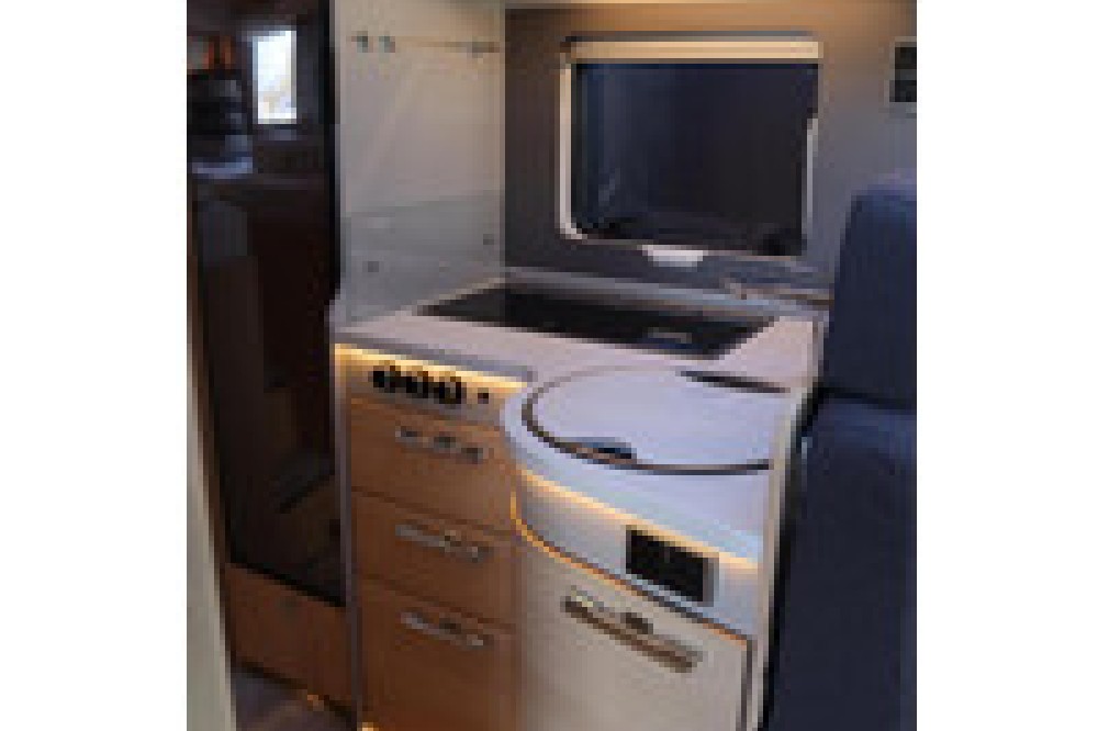 Luxe en praktische detailsDe Hymer BMC-T 600 biedt een ruime zithoek met een L-zit die ontstaat door de draaibare voorstoelen. Het elegante Grand Oak meubeldecor in combinatie met de luxe Bogota bekleding zorgt voor een verfijnde uitstraling. Dankzij de dubbele bodem, die verwarmd is en extra opbergruimte biedt, kun je jouw spullen veilig en droog opbergen. De 180 liter schoonwatertank en de 150 liter vuilwatertank zijn weggewerkt in de dubbele bodem, terwijl je vanuit de buitenkant eenvoudig toegang hebt tot de opslagruimte. De ruime garage heeft een laadhoogte van 132 cm, is aan beide zijden toegankelijk en biedt voldoende ruimte voor uw fietsen, scooter en bagage.