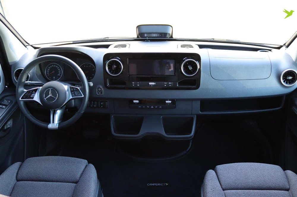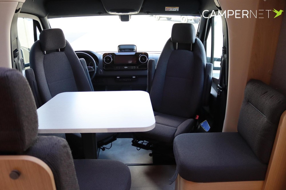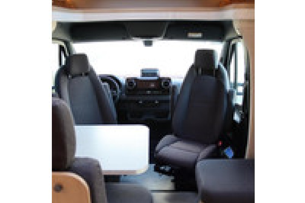 Panorama cabine met toptechnologieIn de cabine van de Hymer BMC-T 600 geniet je van een panoramisch uitzicht, zodat je niet alleen de omgeving optimaal kunt bewonderen, maar ook tijdens het rijden goed overzicht hebt op het verkeer. Het Mercedes-Benz MBUX multimedia systeem zorgt voor een soepele navigatie- en entertainmentervaring, terwijl de luxe pilotenstoelen, die volledig verstelbaar en draaibaar zijn, het comfort verhogen.
