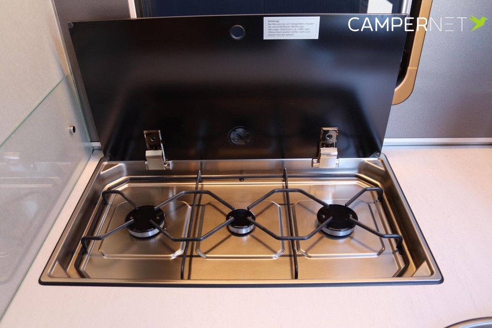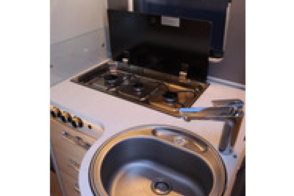 Interieur- 3-pits kookplaat met glasafdekking en RVS spoelbak