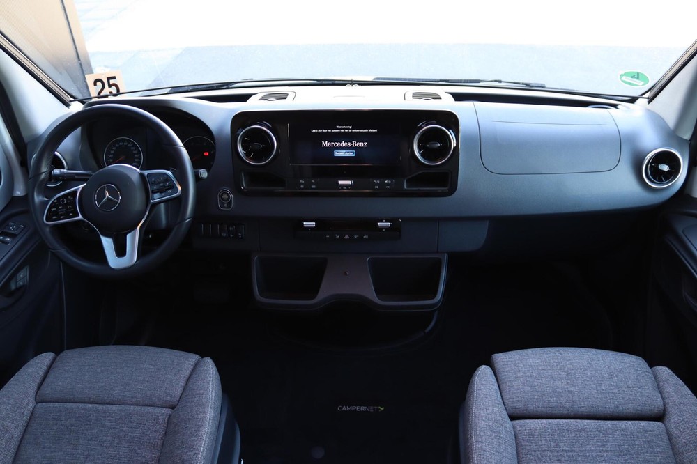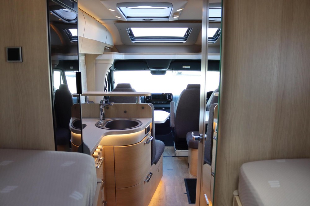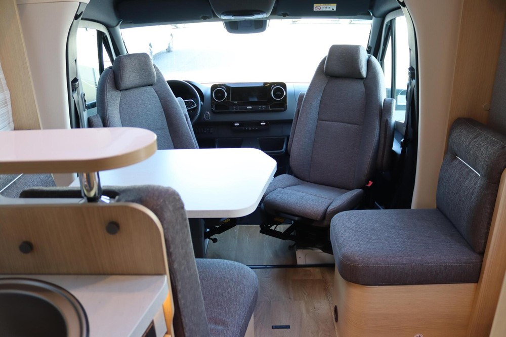 Panorama cabine met toptechnologieIn de cabine van de Hymer BMC-T 600 geniet je van een panoramisch uitzicht, zodat je niet alleen de omgeving optimaal kunt bewonderen, maar ook tijdens het rijden goed overzicht hebt op het verkeer. Het Mercedes-Benz MBUX multimedia systeem zorgt voor een soepele navigatie- en entertainmentervaring, terwijl de luxe pilotenstoelen, die verstelbaar en draaibaar zijn, het comfort verhogen.