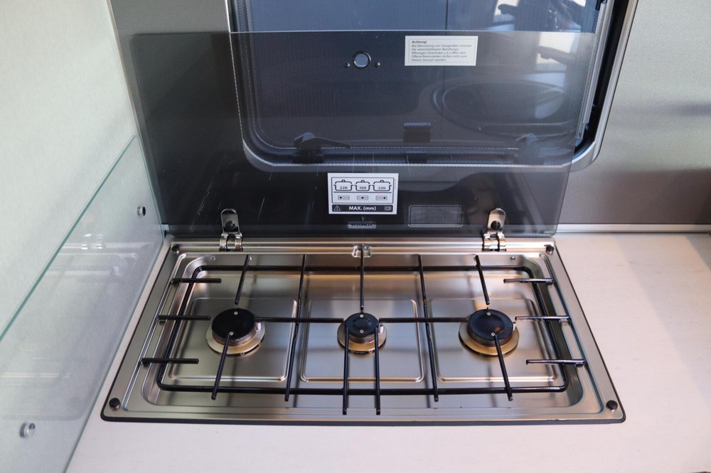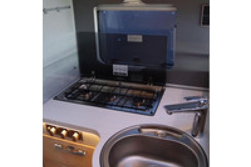 Interieur- 3-pits kookplaat met glasafdekking en RVS spoelbak